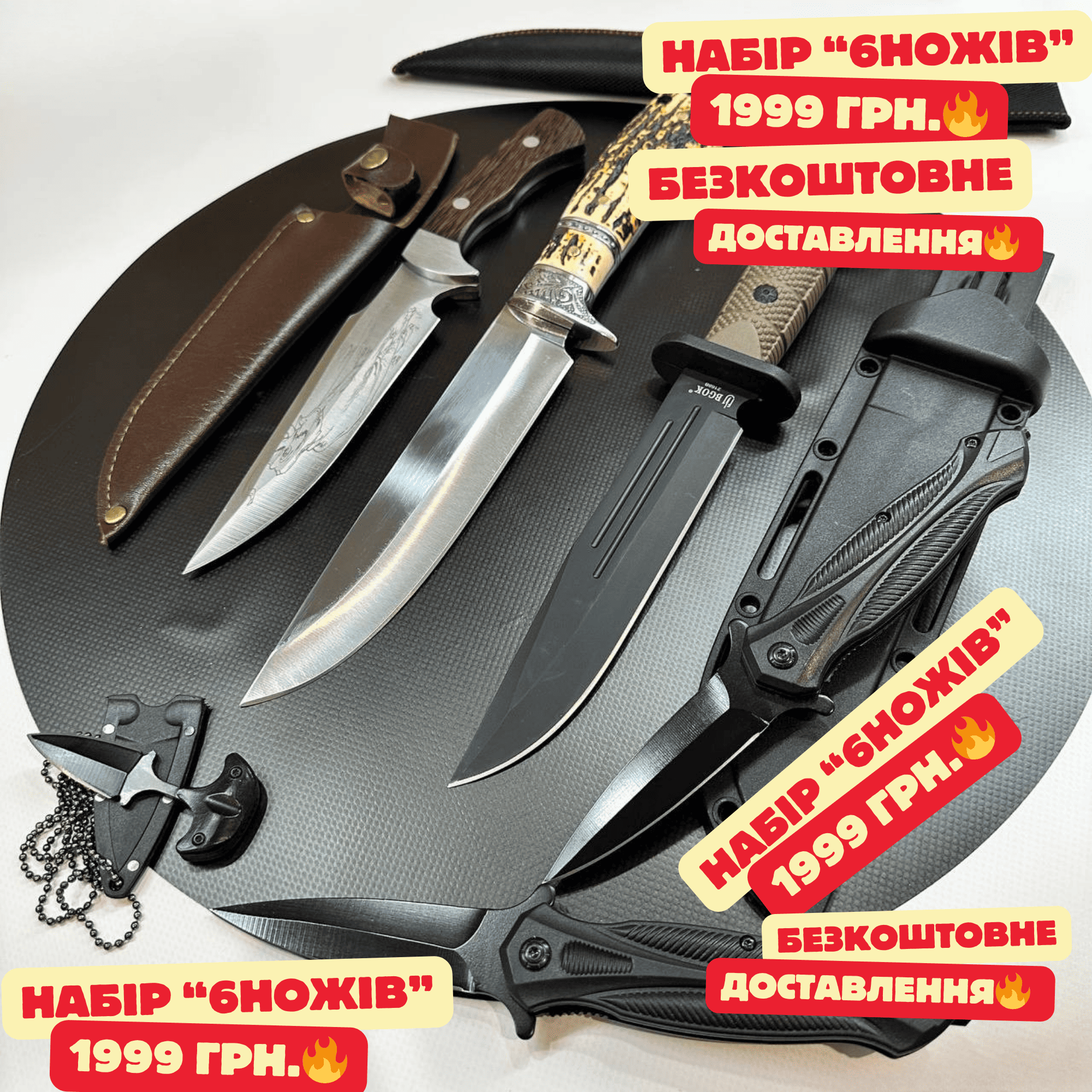 Ціна за комплект з трьох ножів = 1999 грн. + подарунок викідні ножі 2 шт. + тичковий ніж👍